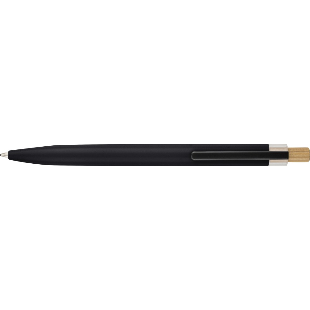 Újrahasznosított alumíniumból készült, lakkozott tollszett golyóstollal és rollerball tollal. A golyóstoll bambusz nyomógombbal, rPET díszítéssel és fém klippel rendelkezik, míg a rollerball toll bambusz/rPET kupakdíszítéssel és hozzá illeszkedő klippel. A tolltesten gravírozott recycled (újrahasznosított) alapanyagra utaló logó található mindkét toll esetében. A golyóstoll kb. 700 méter, a roller toll kb. 500 méter íráskapacitású, mindkettő kék színű tollbetéttel. Színes, újrahasznosított kartonból készült ajándékdobozba csomagolva.